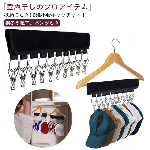 帽子収納 ピンチ 折り畳み 小物用 ハンガー 帽子ハンガー 携帯ハンガー 10ピンチ 帽子掛け 小物収納 洗濯バサミ 洗濯ハンガー 布製 クリップ10個付き 野球帽子 10連 キャップホルダー クローゼット キャップ 帽子 収納