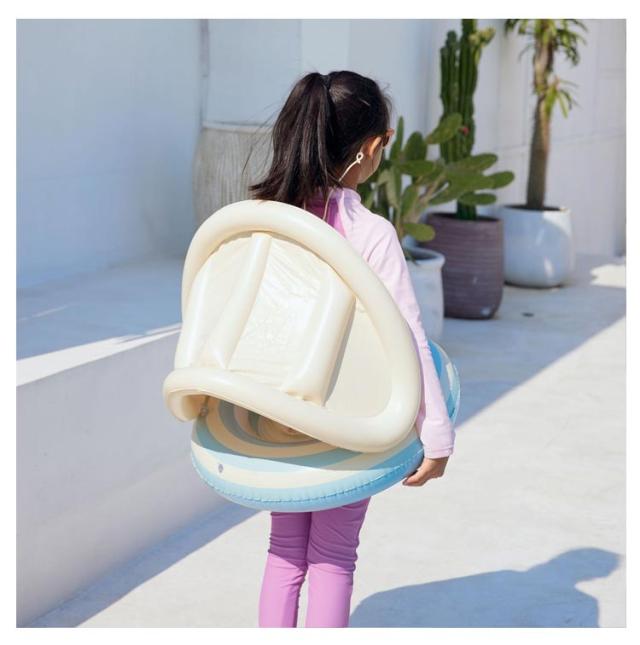 フロート 子供用 浮き輪 座付き 【サンシェード付き】 取っ手付き 幼児 プール用 足入れ浮き輪 サンシェード 取り外し可能 【サンシェード付き】 ベビーボート 赤ちゃん うきわ 足入れ 水遊び スイムリング お風呂 浮き具 海水浴 強い浮力