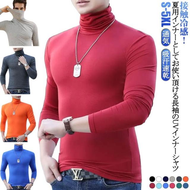 メンズ ゴルフウェア 薄手 インナー ゴルフウェア 長袖 スポーツシャツ ハイネック アンダーウェア 夏 メンズ 接触冷感 UVカット 通気 ゴルフ 冷感 ゴルフウェア シャツ 夏 スポーツシャツ ゴルフ 吸汗 速乾 スポーツウェア 日焼け対策
