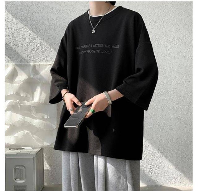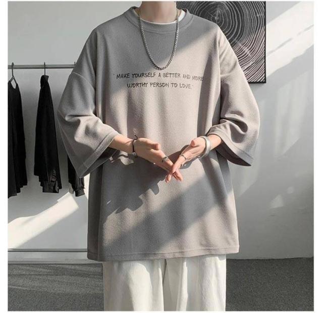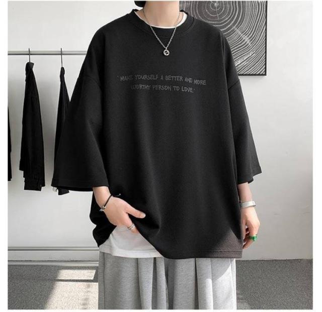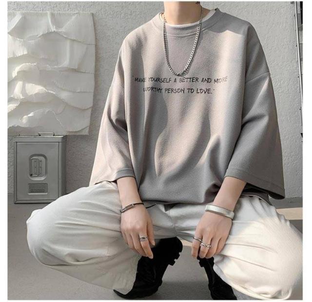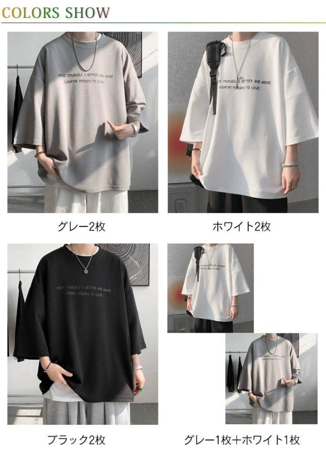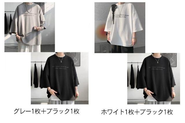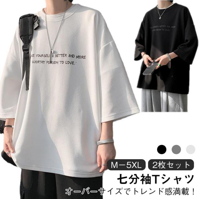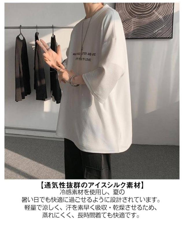 オーバーサイズ メンズ t 2枚セット 2枚セット 7分袖 メンズ ビッグtシャツ ビッグ オーバー 速乾 サイズ 丸首 シャツ 接触冷感 tシャツ ドライ 涼感 カットソー 5分袖 クルーネック ビッグシルエット ドロップスリーブ