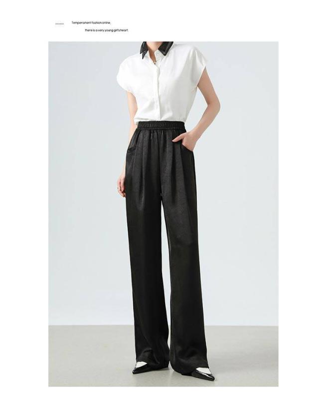 ワイドパンツ 夏 柔らか レディース チャイナ風 秋 春 ボトムス タック 涼しい サテン サテンパンツ パンツ 中華風 ジャカード柄 サテンパンツ ワンマイルウェア 大きいサイズ ウエストゴム ポッケト ゆったり 通勤 美脚 体型カバー キレイめ オフィス