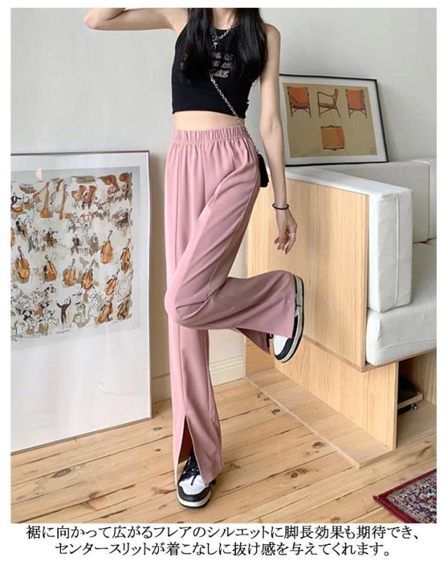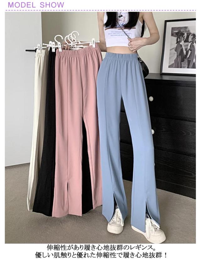 美脚パンツ レディース おしゃれ レギンス フレアパンツ 落ち感 快適 スリットパンツ 9分丈 上品 冷感 センタースリット ウエストゴム 無地 美脚パンツ 普通丈 スキニー カジュアル クール 接触冷感 足長効果 ロングパンツ 細見え