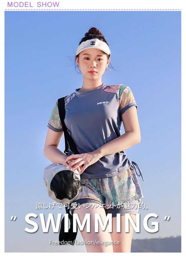 パッド付き レディース 水陸両用 セパレート 水着 女の子 2点セット 中学生 半袖スクール水着 ジュニア水着 レディース 紫外線対策 日やけ防止 スイムウェア ガールズ シンプル おしゃれ スイミング