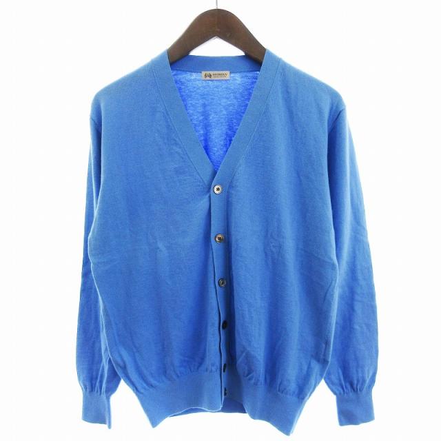 【中古】ユナイテッドアローズ Sovereign カーディガン ニット 長袖 Vネック ウール混 無地 青 ブルー S メンズ
