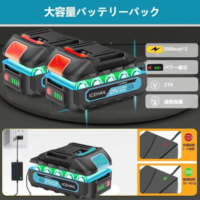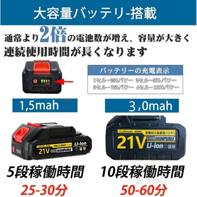 ●付属バッテリー:DC12V1.5AhまたはDC21V/1.5Ahリチウムイオン充電池