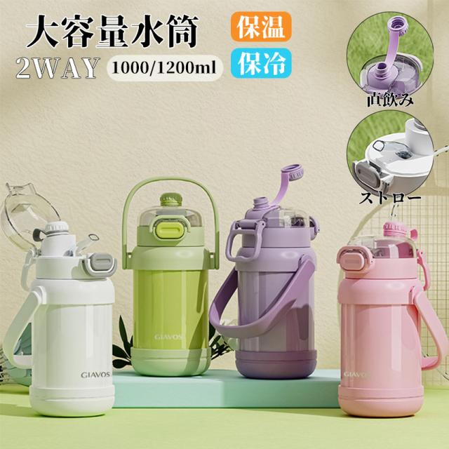 水筒 大容量水筒 1リットル 1.2リットル 316ステンレス ストロー付き 直飲み 2way 持ち運び 漏れない ボトルストラップ ショルダーベルト 保冷 保温 かわいい おしゃれ かわいい おしゃれ 1000ml 1200ml