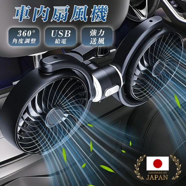 車 扇風機 サーキュレーター 車載扇風機 後部座席 ツインファン ヘッドレスト クリップ 強風力 クーラー USB給電 360°角度調整 低騒音 10W 車用シートファン 車内扇風機 強力 3階段風量 カーファン 小型 首もと 涼しい 日本説明書付