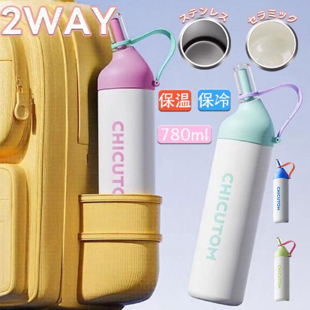 水筒 ストロー付き 直飲み 780ml セラミック ステンレス 保冷 保温 持ち運び ボトル タンブラー こぼれない ストロー 小学生 子供 スリム マイボトル 魔法瓶 水筒 登山 アウトドア 車載 ランドセル 対応 夏休み かわいい 780ml 臭わない 保冷 持ち運び