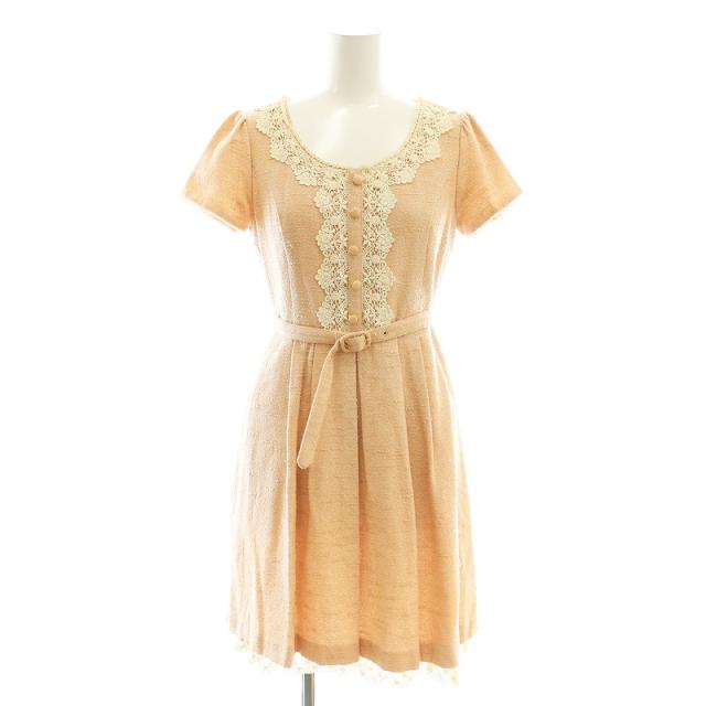 【中古】レストローズ L'EST ROSE ツイード ベルト付き ワンピース ミニ 半袖 ラメ 2 ピンク /AT ■OS レディース