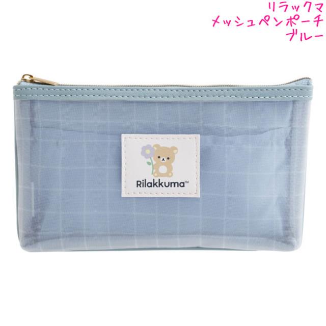 メール便 OK リラックマ メッシュペンポーチ 筆箱 ペンケース 女の子 向け ブルー PT19601 サンエックス おしゃれ で かわいい 文房具