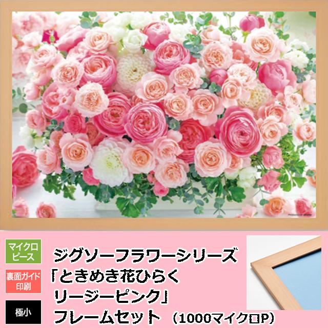 ジグソーフラワーシリーズ「ときめき花ひらくリージーピンク」フレームセット(1000マイクロP)マイクロピース 38×26cm 開運 風水ジグソーピンクの薔薇柄 ジグソーパズル