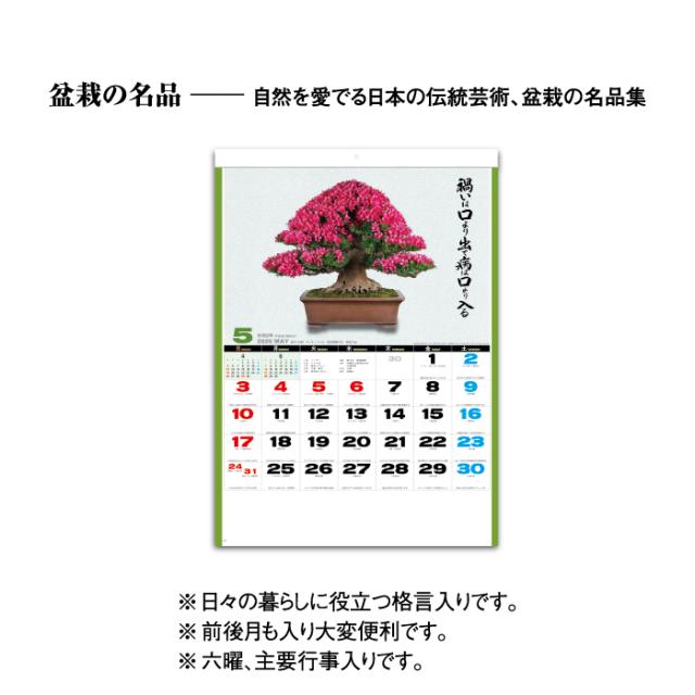 | 商品説明 | 四季を映す盆栽の名品と格言で、和の心を味わえる実用派カレンダー|