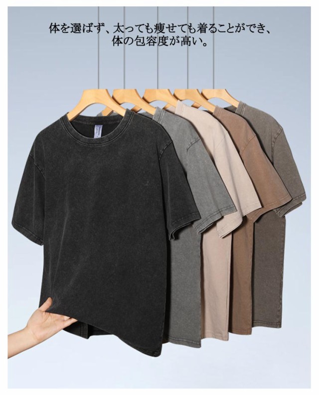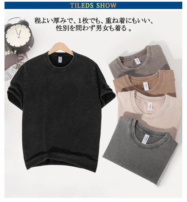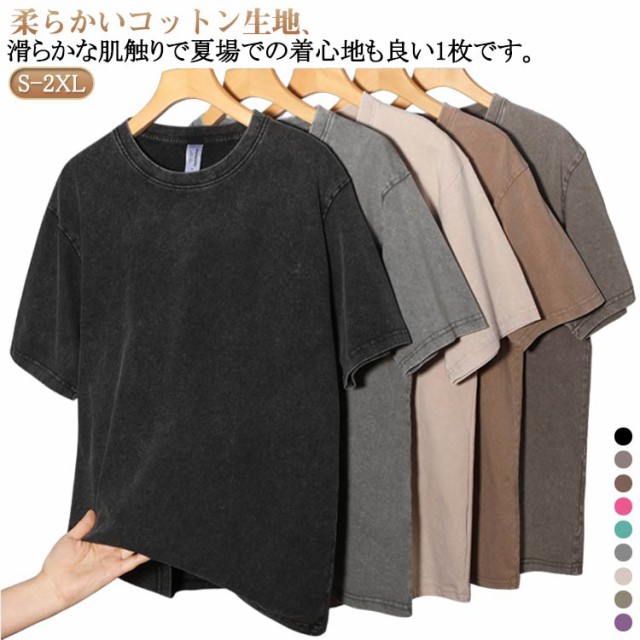 無地 レディース ウォッシュ加工 ゆったり ビンテージ風 レトロ風 クルーネック メンズ 丸首 春夏 ストリート系 ヴィンテージ 半袖Tシャツ ドロップショルダー 男女兼用 Tシャツ トップス Tシャツ ファッション tシャツ おしゃれ シンプル