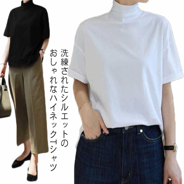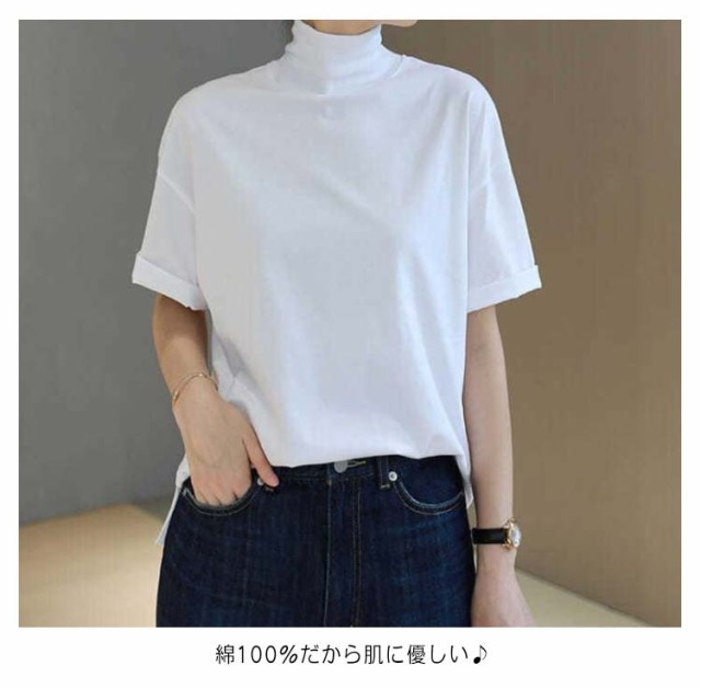 カットソー 50代 半袖 tシャツ トップス 半袖tシャツ レディース タートルネック コットン 綿 無地 大きいサイズ 白 おしゃれ 半袖シャツ シンプル 春 夏 ゆったり 黒 韓国 30代 40代 ハイネック