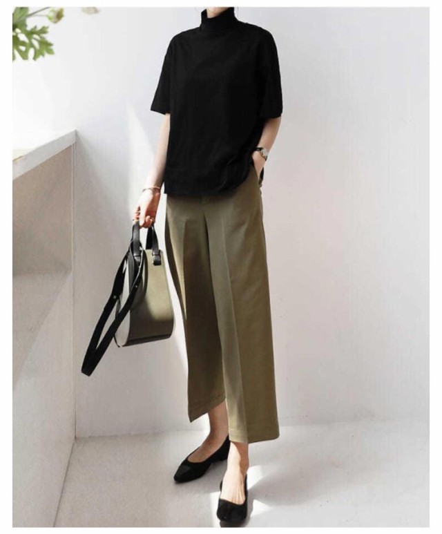 | 洗練されたシルエットの おしゃれなハイネックTシャツ こなれ感プラス♪ 前だけインして脚長効果も◎ 綿100%だから肌に優しい♪ しっかりした生地ながら やわらかな肌触りで着心地抜群◎ | |
