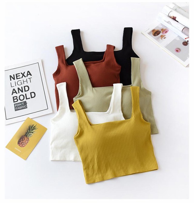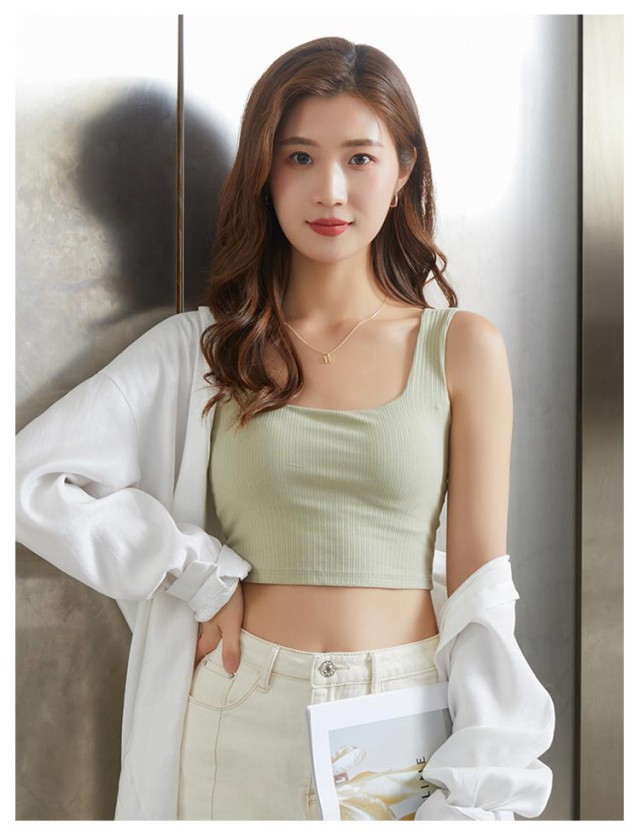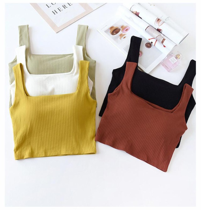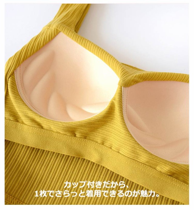 スクエアネック レディース ブラトップ 下厚パッド 部屋着 綿混 ルームウェア カップ付きタンクトップ リブ ナイトブラ カップ付きインナー ノンワイヤー ブラキャミ 寝間着 ショート丈 下着 女性 おしゃれ 可愛い 春 無地