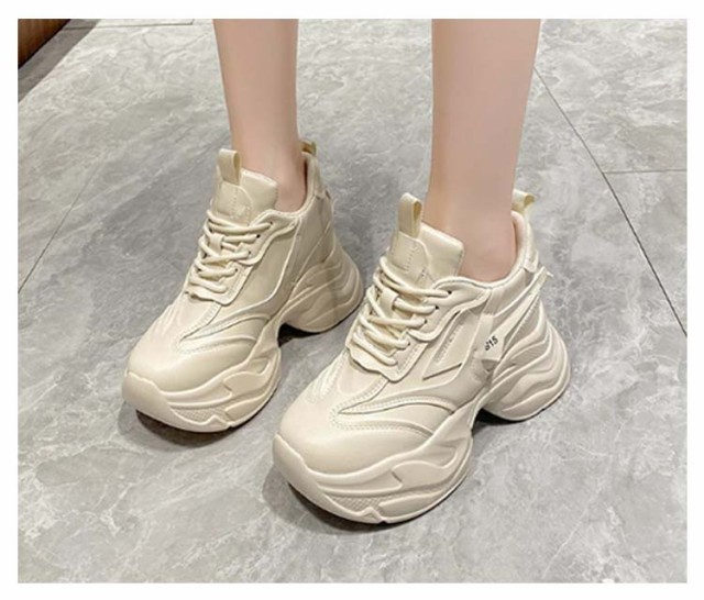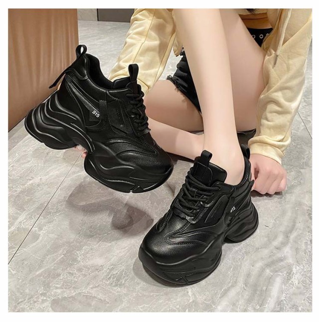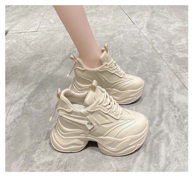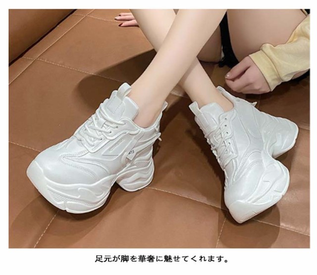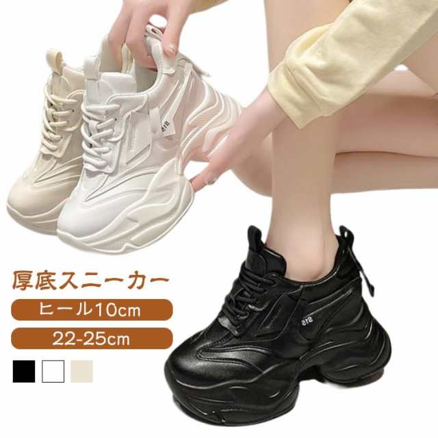 ヒール10cm 厚底 通学靴 運動靴 22 シューズ インヒール スニーカー ローカット レースアップ靴 レディース ダッドシューズ ウォーキング スポーツシューズ シンプル オシャレスニーカー 美脚 疲れない ダッドスニーカー 通勤靴 美脚 ヒール10cm 22.5 23 23.5 24 24.5 25