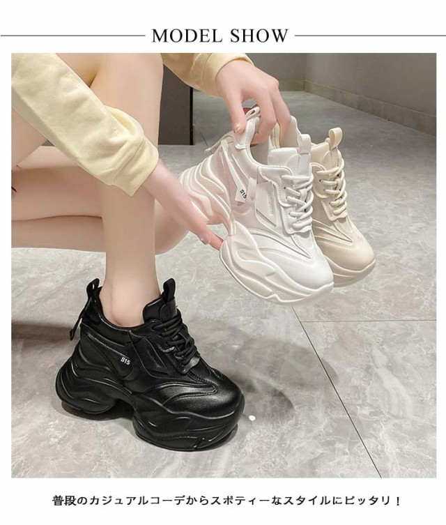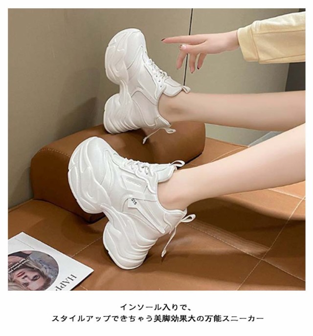 | ヒール10cm 厚底スニーカー 22-25cm 普段のカジュアルコーデからスポティーなスタイルにピッタリ! 分厚いソールで存在感バツグン!足長効果のある厚底スニーカー フォルムが可愛い人気の厚底ダッドスニーカー! 足元が脚を華奢に魅せてくれます。 インソール入りで、スタイルアップできちゃう美脚効果大の万能スニーカー☆ | |