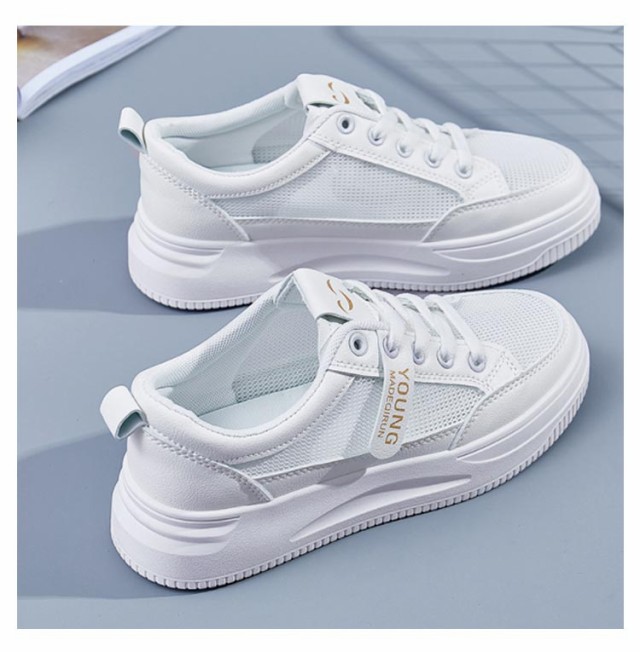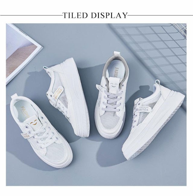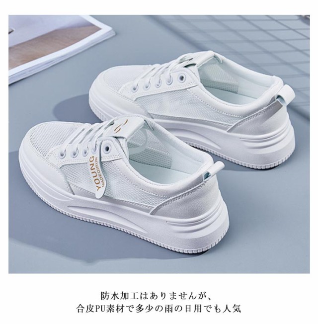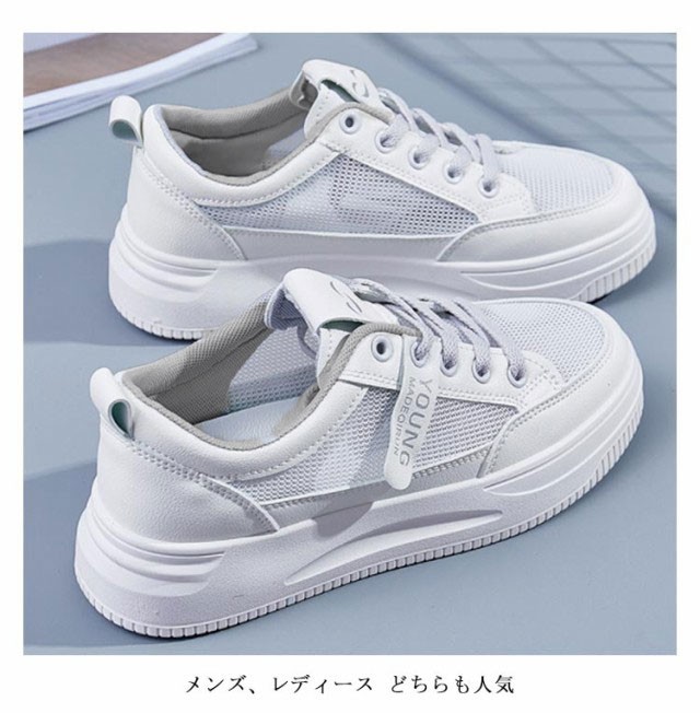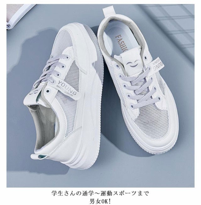 白スニーカー 厚底 ホワイトグレースニーカー メッシュ 革 通学靴 スニーカー 白靴 通気性 柔軟性がいい 学生さん お仕事履き 着痩せ まで人気 厚底4cm カジュアル 通学用スニーカー 簡単 オシャレ 軽量 かるくて 履きやすい 22.5-25cm