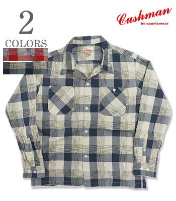 CUSHMAN クッシュマン 長袖|絣|チェック|オープンカラーシャツ『KASURI CHECK OPEN COLLAR SHIRT』【アメカジ・ワーク】25491
