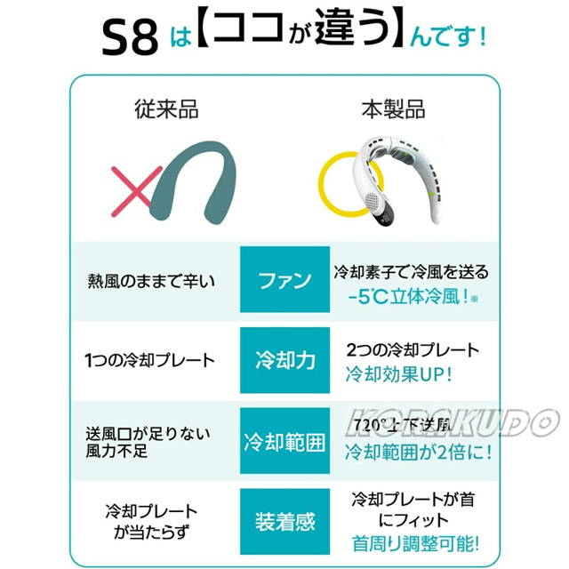 - ひんやり冷たくて、冷風もくるのでとても気持ちがいいです。音は気持ち大きいが、それなりの風力。外に出る時は必須のアイテムになりそうです。購入して正解でした。