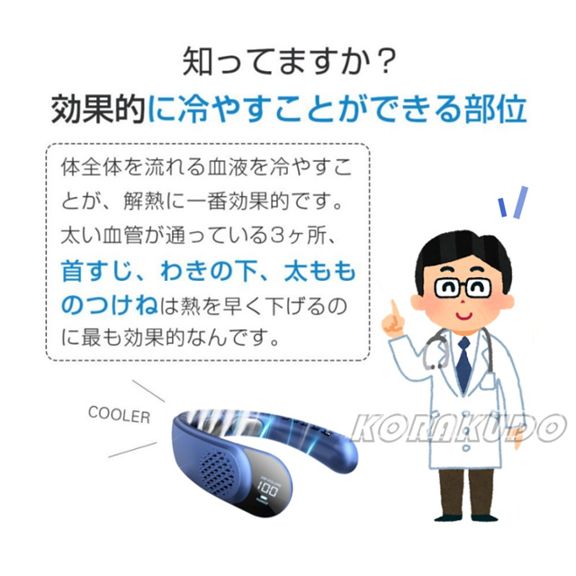 首掛け扇風機 ネッククーラー 冷風機 二つ冷却プレート付 大風量 上下送風 ネックファン 保護ケース 羽なし 小型 軽量 4000mAh大容量 首かけ 羽なし 静音