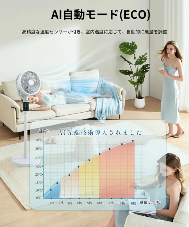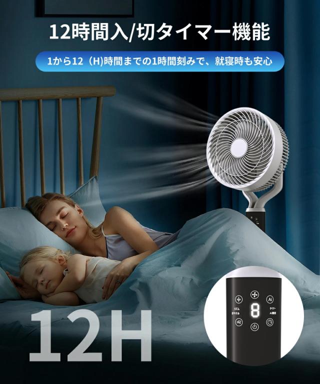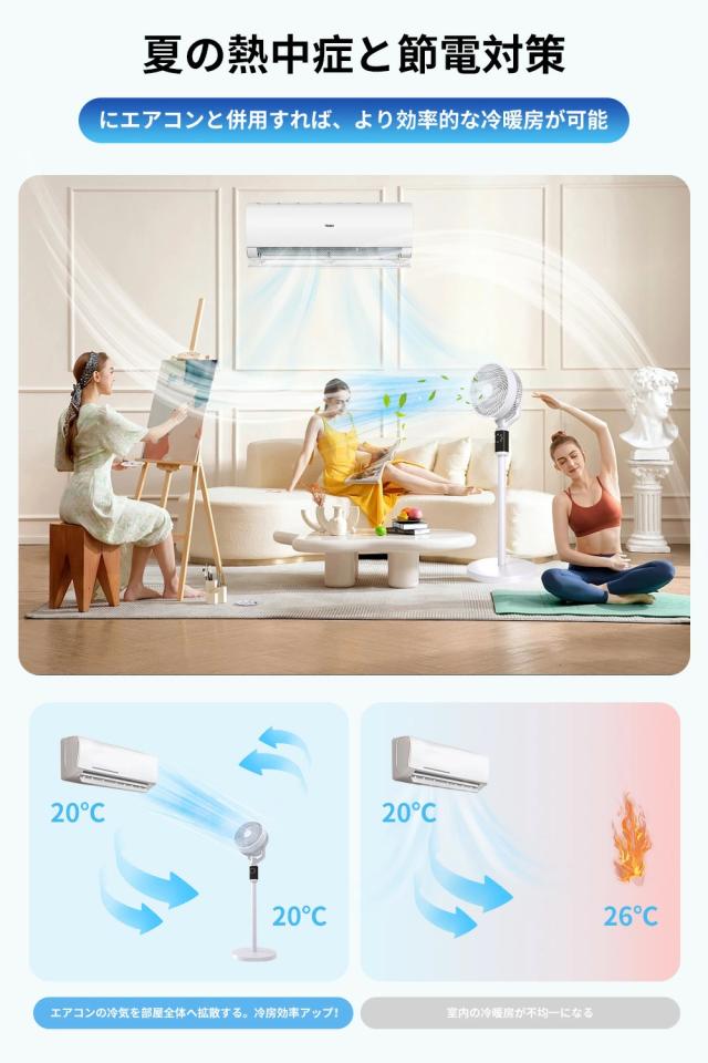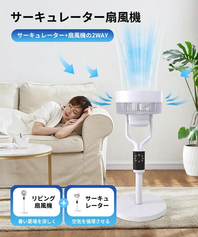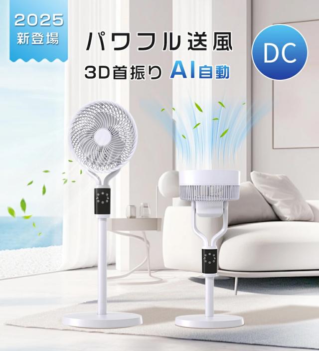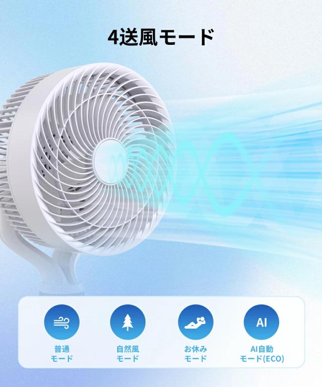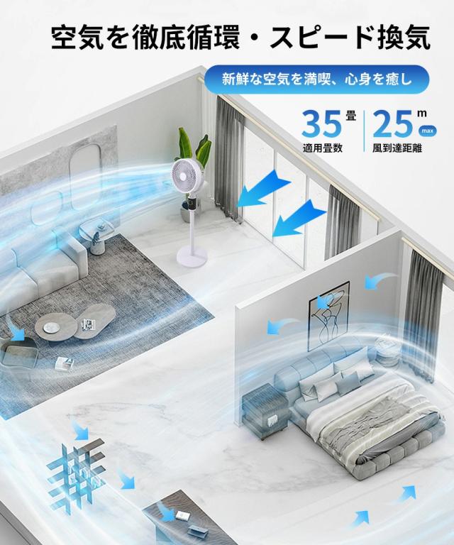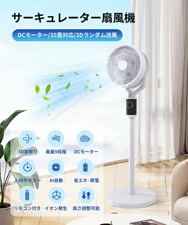 【AI自動】サーキュレーター 扇風機 dcモーター 3D首振り 暴風 静音 省エネ 高さ調整可能 25畳 イオン発生 空気清浄機 入/切タイマー AI自動/お休み/普通/自然風モード リモコン付き 空気循環 部屋干し 冷房 梅雨対策