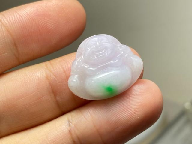 一点物 春彩 糯種 薄ピンクラベンダー 本翡翠 ヒスイミャンマー産 ペンダント 手彫り 仏像 弥勒仏