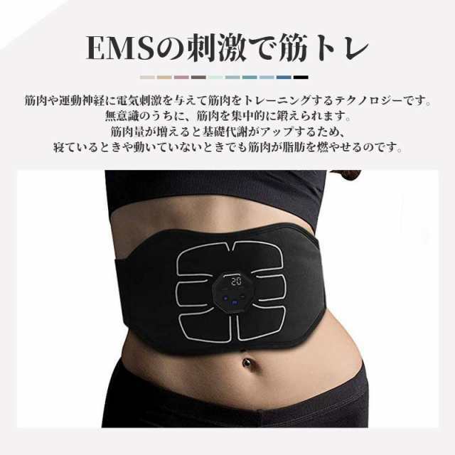 EMSベルト ジェル不要 腹筋マシン 筋トレ器具 筋肉刺激 腹筋器具 フィットネスマシーン トレーニングベルト ウェストベルト ems ダイエット USB充電 女性 男性