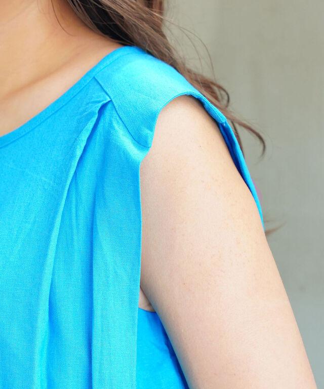 タックは肩先にも付けることで、