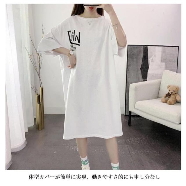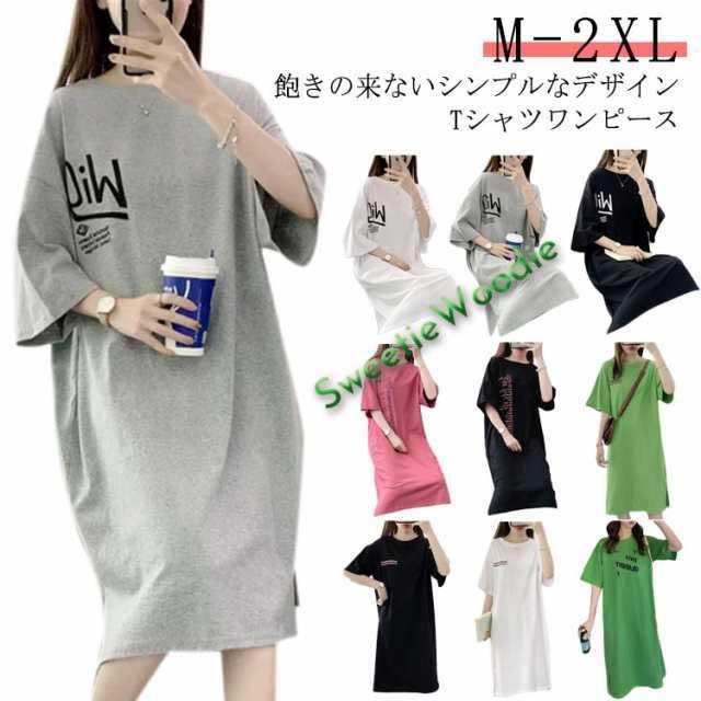 Tシャツワンピース レディース 半袖 春 夏 春夏 ロングワンピ 半袖ワンピース ロングTシャツ オーバーサイズ プリントTシャツ 春 秋 無地Tシャツ ドロップショルダー クルーネック 半袖Tシャツ ロング ワンピース 体型カバー カットソー 無地 シンプル 送料無料