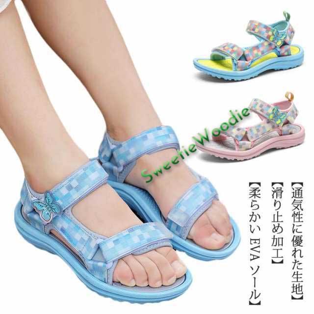 送料無料 スポーツサンダル キッズ 水陸両用 おしゃれ 子供サンダル 女の子 ベルクロサンダル 歩きやすい 履きやすい キッズサンダル ストラップ マジックテープ スポーツ 軽量 ピンク ビーチサンダル