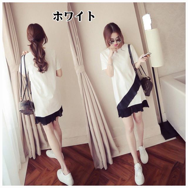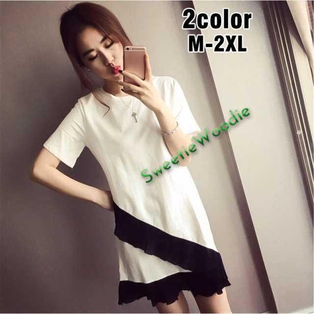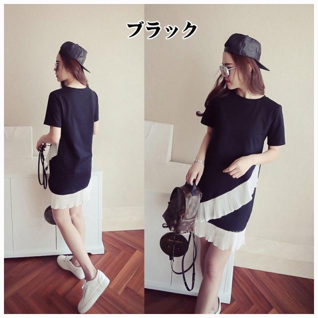 ワンピース レディース ファッション ショート丈 ミニ丈 無地 Tシャツ地 裾シフォンレース シンプル おしゃれ かわいい カジュアル おでかけ デー