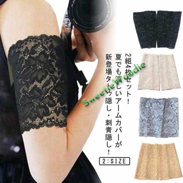 2組4枚セット 隠すサポーター タトゥー隠し 傷跡隠す レース 肌色サポーター 刺青隠し アームガード ショート 接触冷感 日焼け対策 ラッシュガード 通気性 ストレッチ 二の腕サポーター 二の腕カバー tatoo 傷跡かくし 送料無料 黒 白 グレー 肌色
