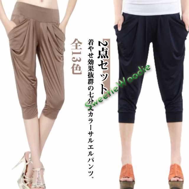 2枚セット サルエルパンツ レディース カラーパンツ カラーサルエル 7分丈 パンツ クロップドパンツ 七分丈 韓国ファッション カジュアル おしゃれ