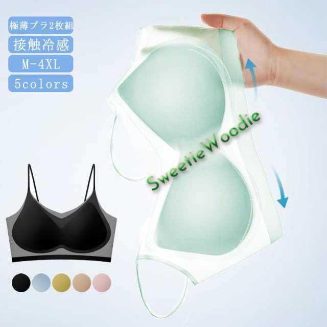 極薄 ブラジャー 2枚組 ノンワイヤー 接触冷感 楽ちん 着痩せ シームレス 胸を小さく見える ブラ おやすみブラ ナイトブラ 夏用 レディース 下着 インナー スポーツブラ 通気性 涼しい クール 蒸れない ブラトップ 薄い