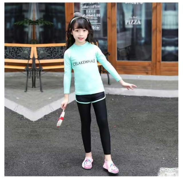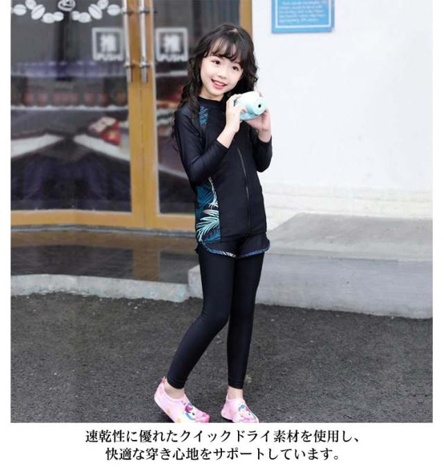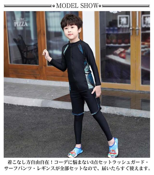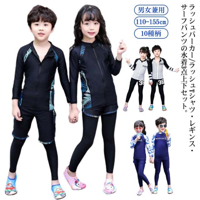 水着 キッズ 3点上下セット 長袖ラッシュガード ラッシュパーカー レギンス サーフパンツ 海パン 女の子 男の子 子ども フィットネス水着 セパレート UVカット パーカー 露出控えめ 日焼け止め 涼感 速乾 吸水 水陸両用 100 110 120 130 140 150 cm