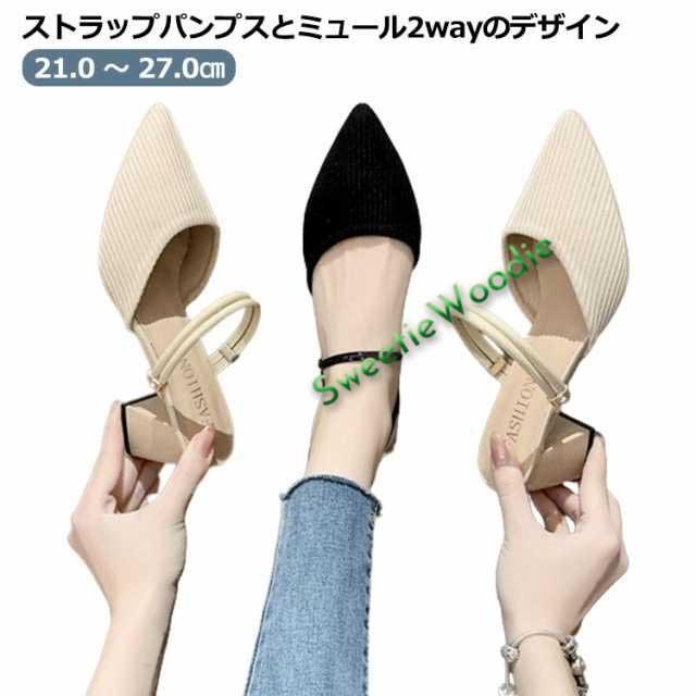 サンダル レディース ミュール 春 夏 2way 春夏 ストラップパンプス 黒 ブラック ベージュ 痛くない 脱げない 疲れにくい 履きやすい ニット ポインテッドトゥ 美脚 走れる 通気 快適 エレガント パンプス 婦人靴 通勤 カジュアル オフィス