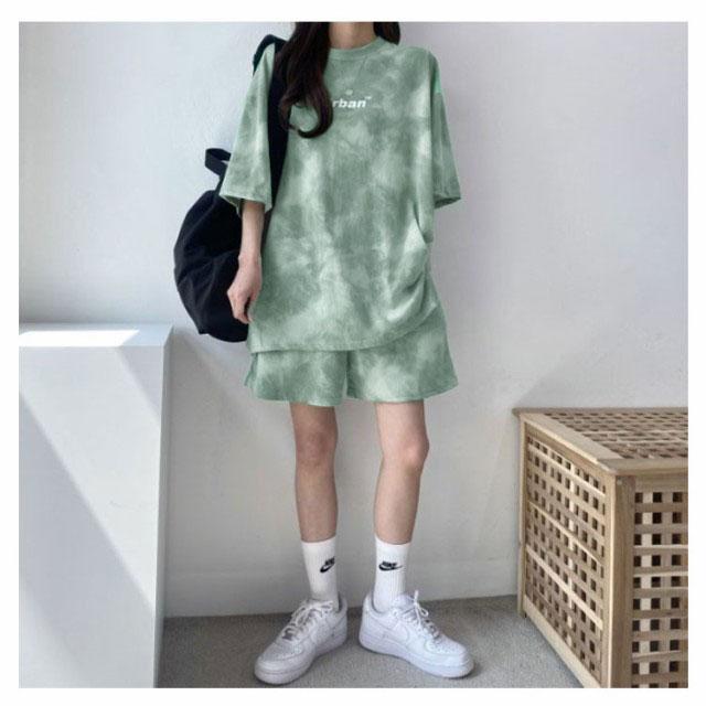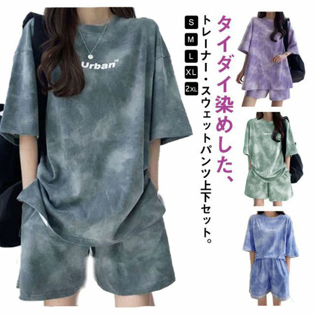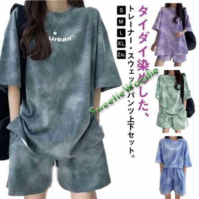 セットアップ レディース トップス パンツ ルームウェア 部屋着 半袖 Tシャツ カットソー ゆったり 春 夏 春夏 ショートパンツ スウェット 短パン トレーナー ナイトウェア 寝巻き ジャージ 大人 カジュアル パジャマ ダンス衣装 タイダイ染め 韓国 送料無料