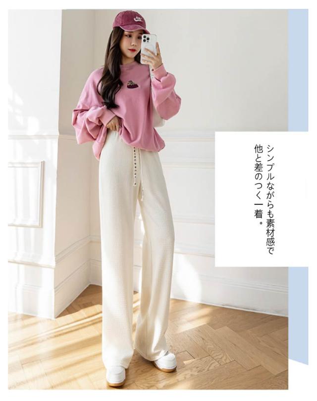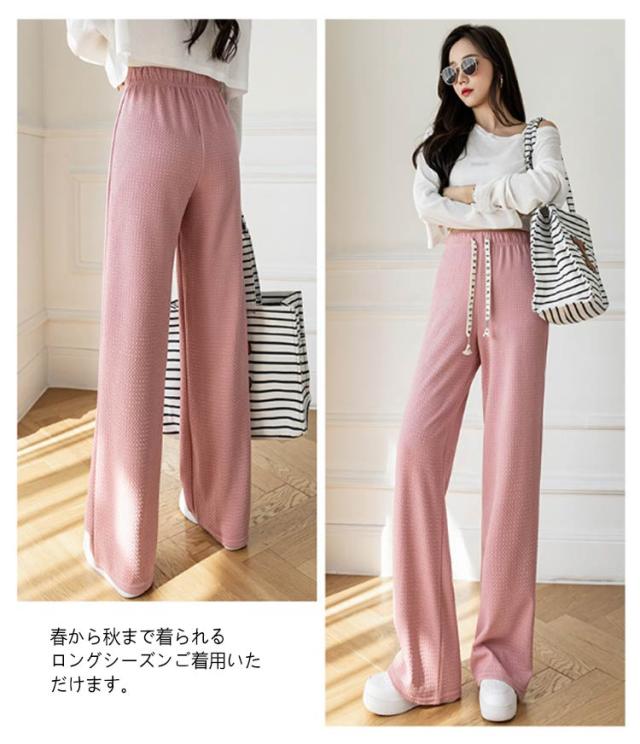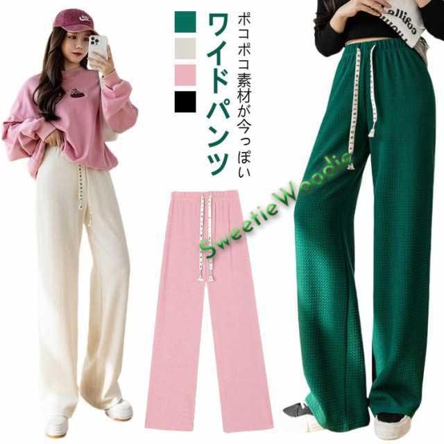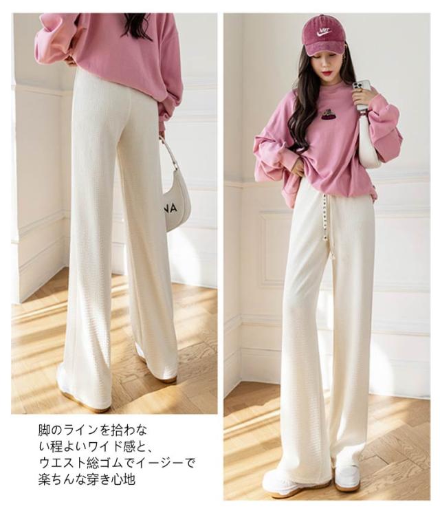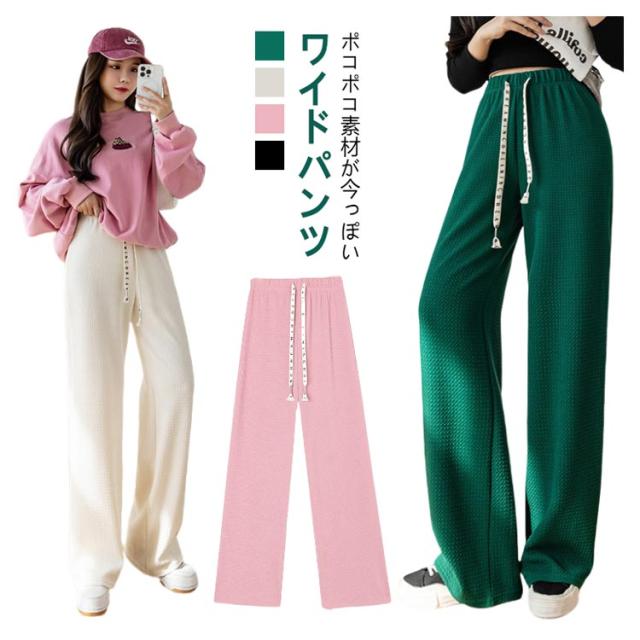 ぽこぽこ加工 ポップコーン ワイドパンツ エンボス加工 レディース 立体的 凹凸感 紐付き ワイドパンツ ロング丈 パンツ ボトムス 楽ちん キレイめ 体型カバー カジュアル 春 夏