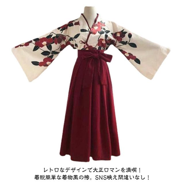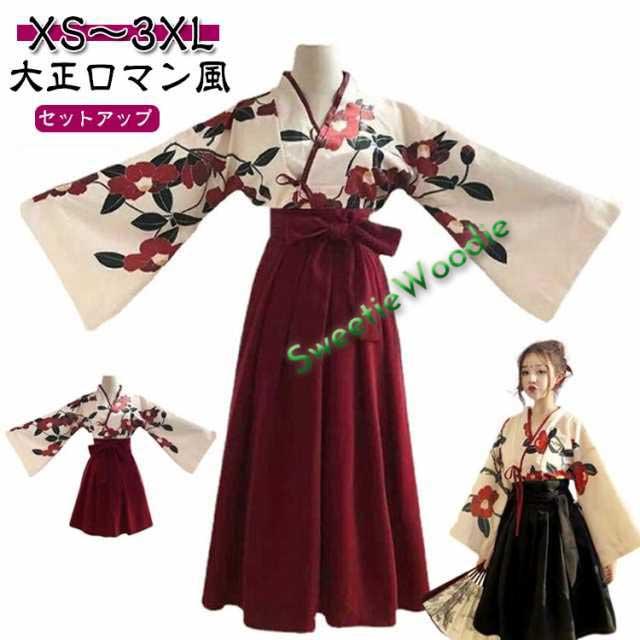 花柄 着物 黒 和服 レディース 女の子 モダン 浴衣風 2点セット コスプレ 大正ロマン 袴セット 和装 着物風 袴 衣装 服 仮装 上下セット ハロウィン ロリータ ショートスカート ロングスカート 卒業式 ジュニア 大正ロマン 赤 着物風 カジュアル
