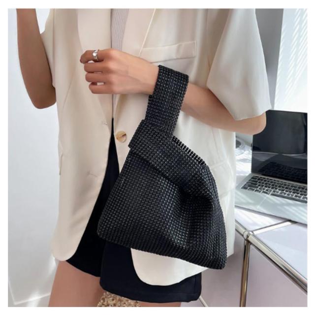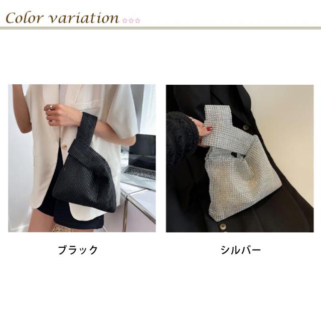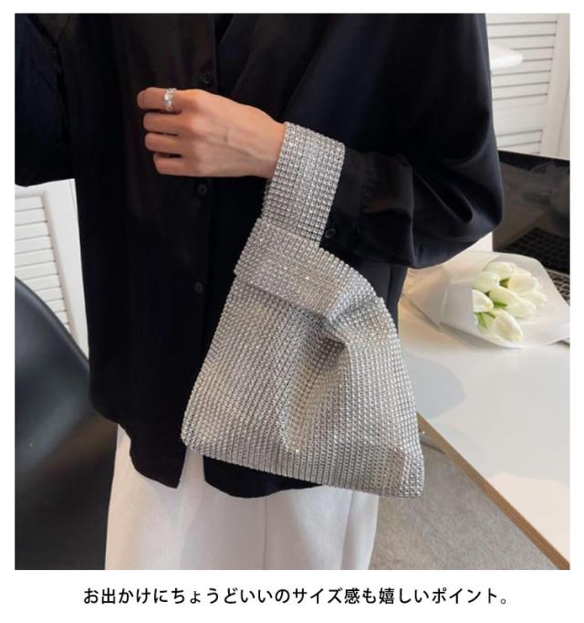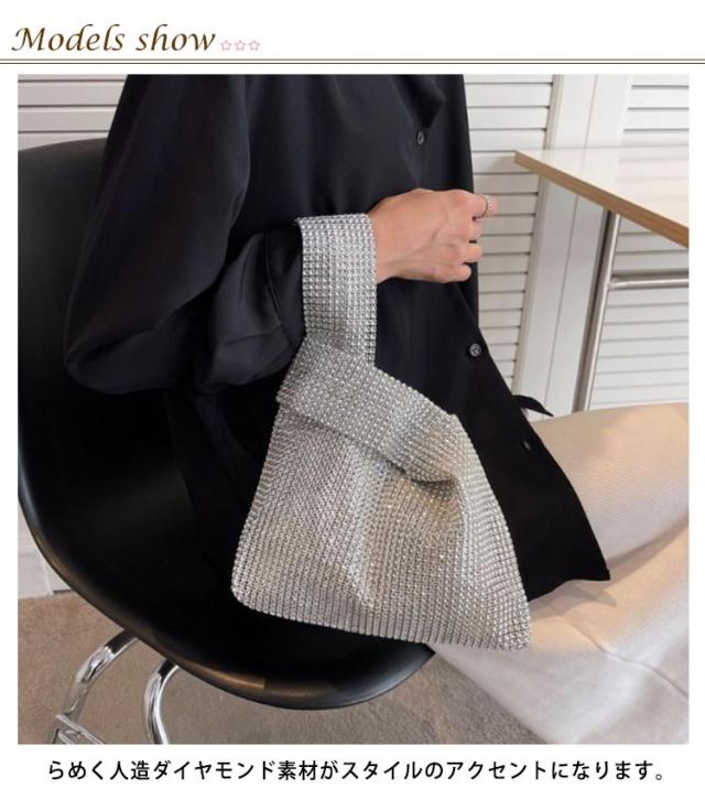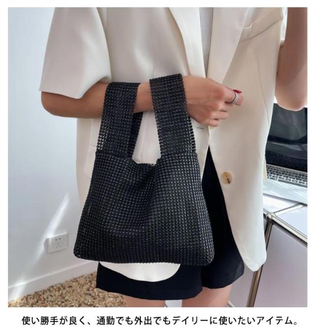 | 持つだけで華やかで高級感のあるラメニットバッグ。 らめく人造ダイヤモンド素材がスタイルのアクセントになります。 お出かけにちょうどいいのサイズ感も嬉しいポイント。 2通りの持ち方ができ、どちらでも簡単におしゃれな雰囲気を演出。 使い勝手が良く、通勤でも外出でもデイリーに使いたいアイテム。 | |