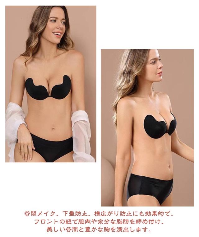 | 【シリコンブラ】【2点セット】【A・B・C・D】 ドレス、ワンピースで活躍シリコンブラ♪ サイズはA・B・C・D肩紐なしブラジャーです。 裏地にはシリコンを採用し、強力な粘着力を実現し、安心・安全にご使用いただけます。 使用後は、温かい水とマイルドな石鹸で洗えば何度でも繰り返し使用できます。 谷間メイク、下垂防止、横広がり防止にも効果的で、フロントの紐で脇肉や余分な脂肪を締め付け、美しい谷間と豊かな胸を演出します。 衣服に透ける心配がないので、デコルテラインが美しく魅力的に見えます。 | |