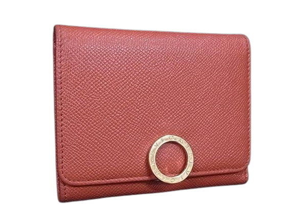 美品 BVLGARI ブルガリ 財布 ブルガリブルガリ - オレンジ系 レザー レディース 三つ折り ロゴクリップ ゴールド金具 【本物保証】