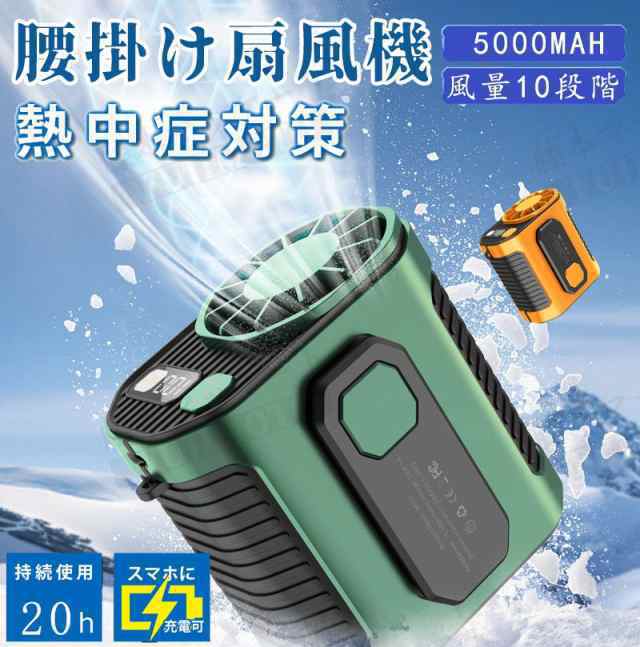 腰掛け 扇風機 ファン ベルトファン 空調ファン 腰ベルトファン 5000mAh 服の中に送風 モバイルバッテリー 送風機 首かけ 携帯扇風機 USB充電式 ハンズフリー アウトドア 配達員 建設労働者 外仕事 熱中症 暑さ対策