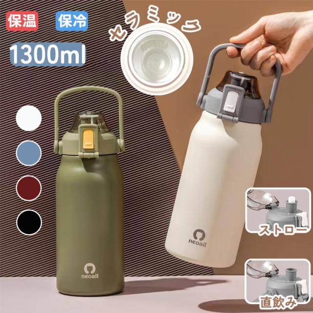 セラミック 水筒 セラミック タンブラー ストロー付き セラミックコーティング ストロー付きタンブラー 水筒 マグボトル こぼれない 大容量 真空断熱 持ち運び 1300ml