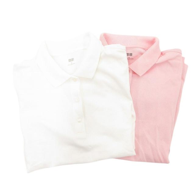 【中古】ユニクロ UNIQLO 2点セット まとめ ポロシャツ 半袖 M 白 ホワイト ピンク /AE ■FF レディース