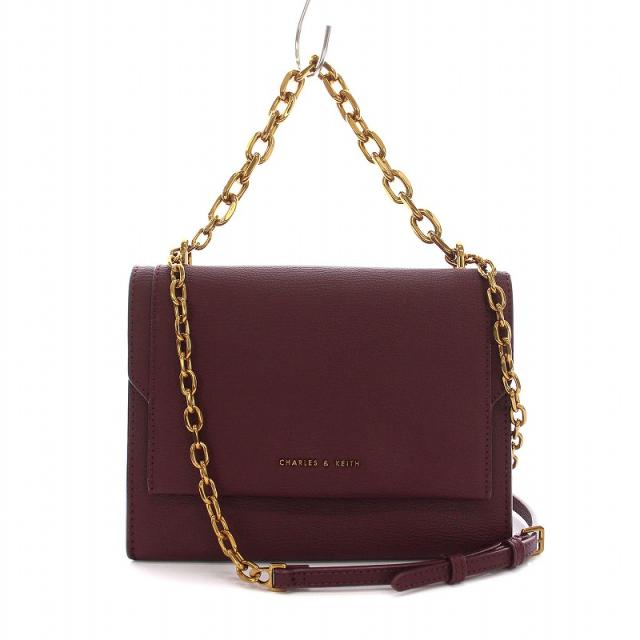 【中古】チャールズ&キース フロントフラップ チェーンハンドルクロスボディバッグ ハンドバッグ 2WAY ショルダー