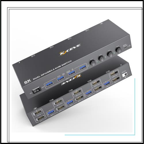 KCEVE 8K DP KVM切替器 4PC 2モニター、コピー/拡張モード USB 3.0ポート (8K@30Hz/4K@144Hz) KVM Switch KVMスイッチ PC4台とディスプレ
