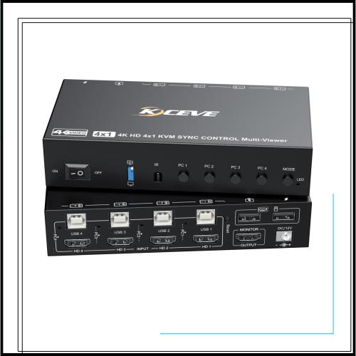 ◆商品名:KCEVE KVM切替器 4入力1出力 シームレス KVM Switch KVMスイッチ 4K@30Hz 画面分割切替器 PC4台とモニター1台対応 キーボード、マウスを4